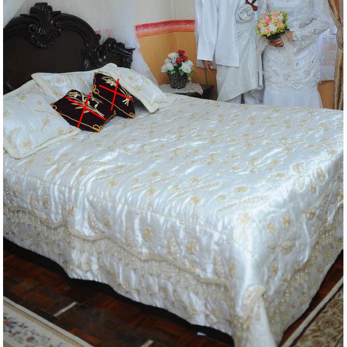 Cadar Pengantin Beropol Set Cadar Pengantin Ropol Cotton 3in1 Cadar Pengantin Furniture Home Living Bedding Towels On Carousell